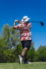 Stand out from the crowd in the Cherry OG Polo—a bold fusion of camo colors, that’s anything but ordinary. Designed for golfers who refuse to settle for mundane, this polo lets you revel in individuality while looking sharp and athletic on and off the course. Crafted with a sleek athletic fit and built for all-day comfort - so you can focus on your swing, not your shirt. Life’s too short to blend in.