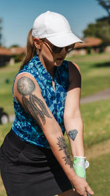 Play with confidence and exude good vibes in the Blue Dream Polo, featuring a chic pattern of beautiful peace signs. Designed for women who blend feminine flair with modern edge, this polo transitions seamlessly from the course to any social setting. Celebrate your individuality, embrace effortless comfort, and showcase your one-of-a-kind style.