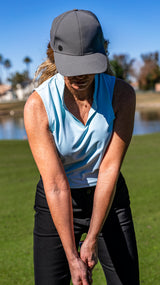 Step onto the course in effortless style with our Blue Skies Golf Polo — a soft, serene hue that reflects calm confidence and timeless grace. Crafted from lightweight, breathable performance fabric, this polo keeps you cool, dry, and comfortable through every swing. Its flattering feminine cut and smooth stretch fit make it as perfect for play as it is for everyday wear. Pair it with white shorts for a crisp, classic golf look, or denim for an easy, off-course vibe.